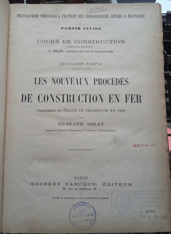 Cours de construction : les nouveaux procédés de construction en fer... / par Gustave Oslet